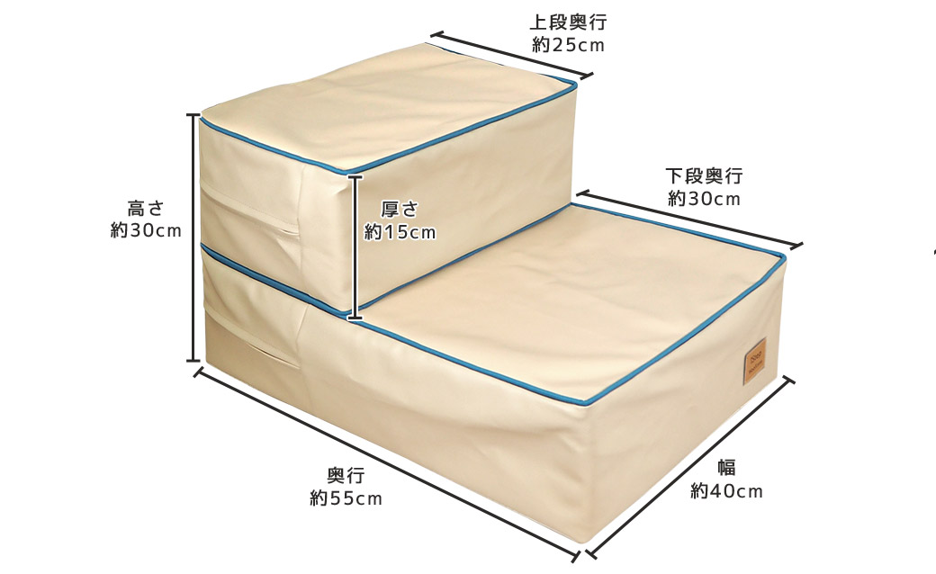 階段状にした場合(約)幅40cm×奥行55cm×高さ30cm、厚さ15cm、上段奥行25cm、下段奥行30cm