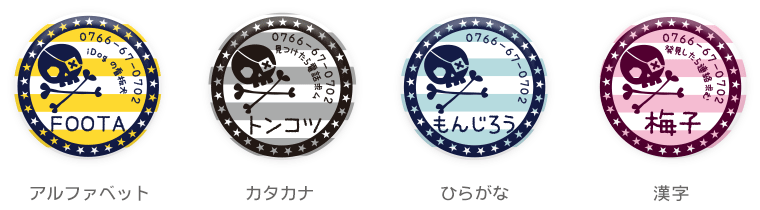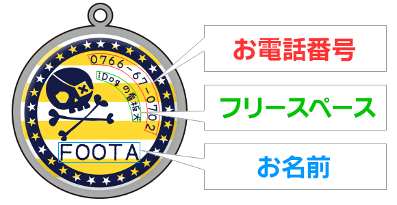 愛犬・愛猫が万が一、迷子になったときのために… iDogオリジナル柄のかわいい迷子札はいかがですか♪ 小さなコイン型の丸いプレートに可愛い絵柄が入っていて、 一見迷子札には見えないくらい、とってもオシャレです! 絵柄の中に、ワンちゃんの名前や電話番号などを 入れて、貴方だけの1枚をお作りします。