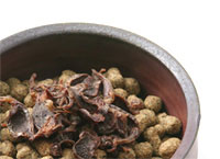 おやつとしてそのまま与えることの他、食事にまぜることもイメージしてチップ状に加工。 大さじ1杯(小粒約10粒)のカロリーは約18.6Kcal。犬種や体格をとわず安心して与えることができます。