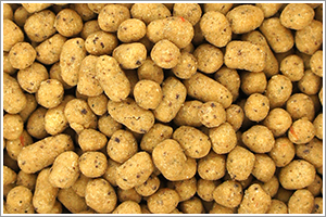 - 粗たん白質 26.5%以上、粗脂肪 9.5%以上、粗繊維 1.8%以下、粗灰分 7.0%以下、水分 6.0%以下