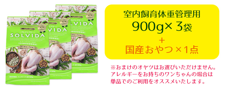 犬 ドッグフード ソルビダ グレインフリーチキン/室内飼育体重管理用/900g×3袋まとめ買いセット ドライフード