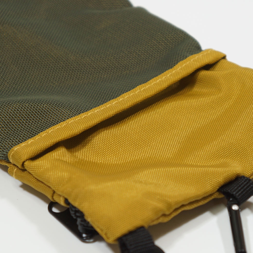 パラコードをサッと外して使えます。中身が見えるメッシュポケットと中身が見えない本体ポケットで様々なシーンで便利に使えます。
