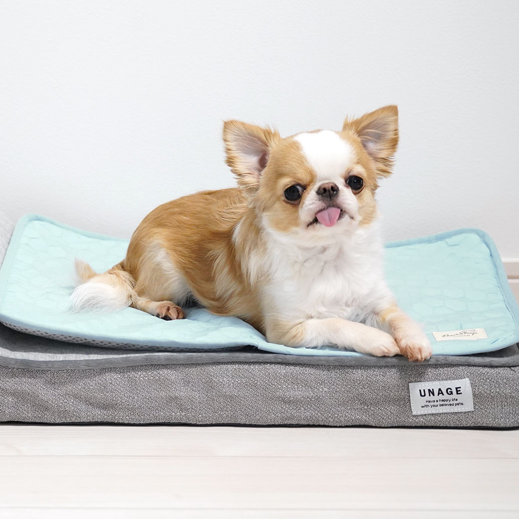 チワワ2.0kgのこつぶ使用(UNAGE低反発シニアベッドくつろぎソファSサイズ併用)