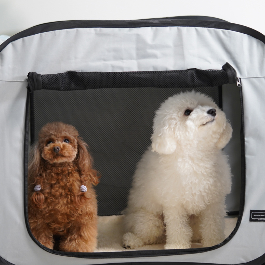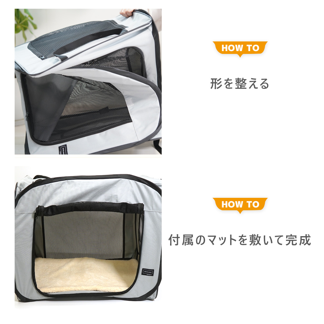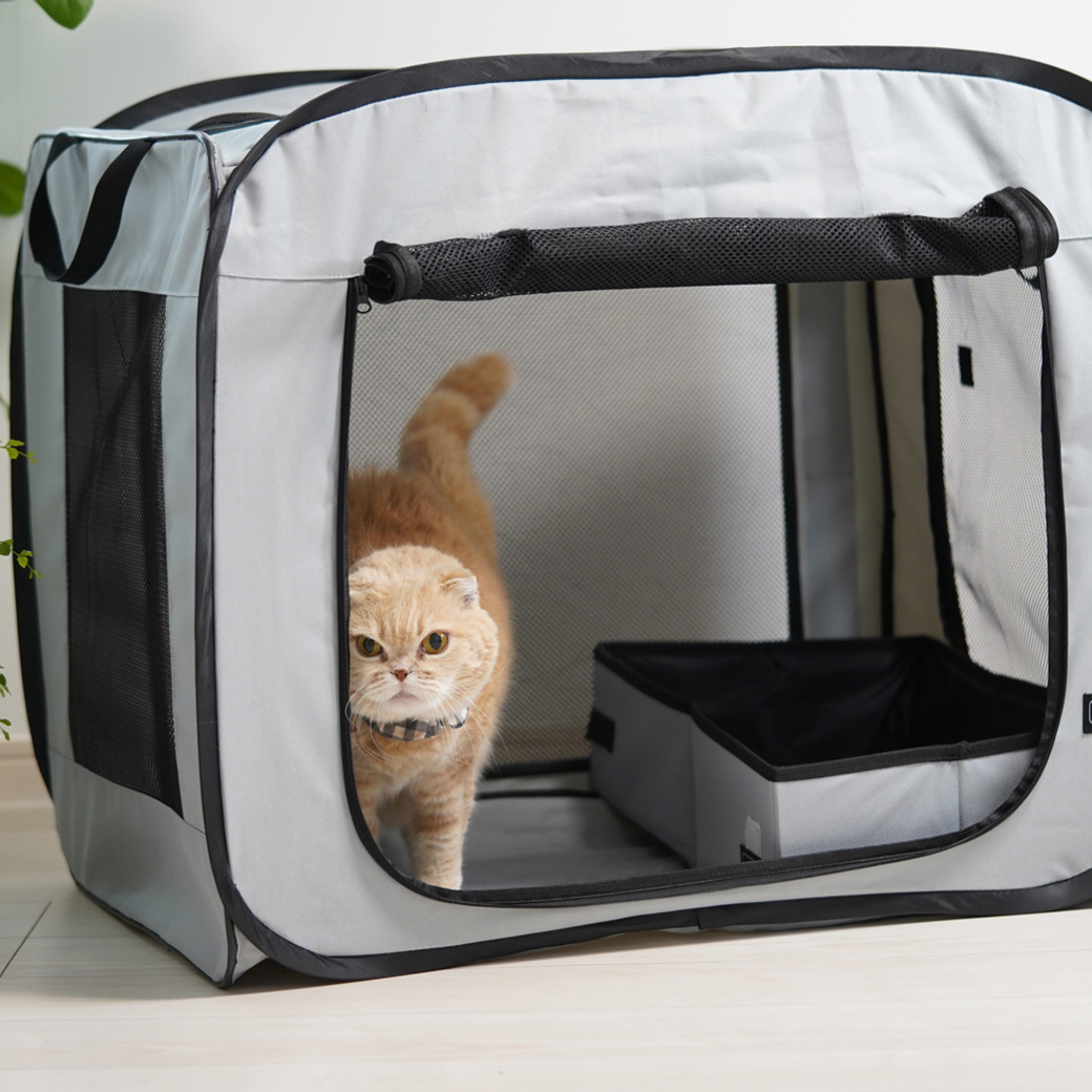 折り畳み式の簡易ケージです。 組み立てもパッと広げるだけで簡単で、使わない時はコンパクトに収納できます。 おでかけや旅行はもちろん、万が一の避難スペースの備えとして持っておきたい必需品です。