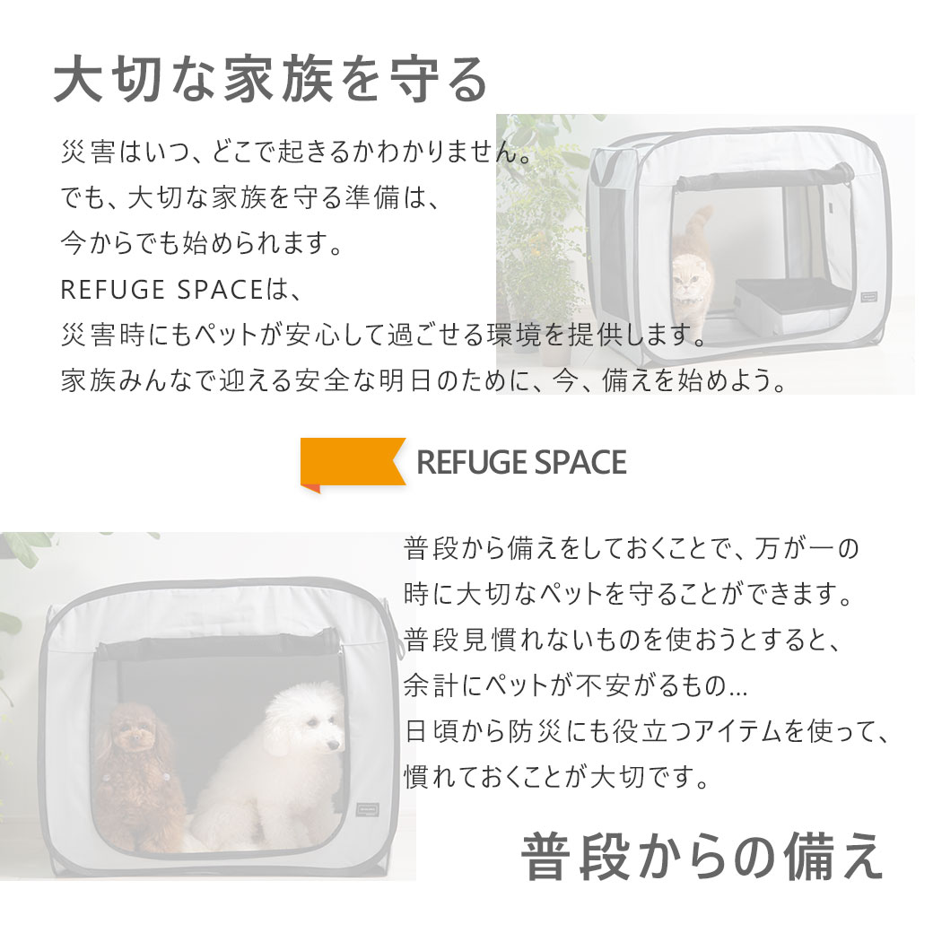 災害はいつ、どこで起きるかわかりません。 でも、大切な家族を守る準備は、今からでも始められます。 REFUGE SPACEは、災害時にもペットが安心して過ごせる環境を提供します。 家族みんなで迎える安全な明日のために、今、備えを始めよう。