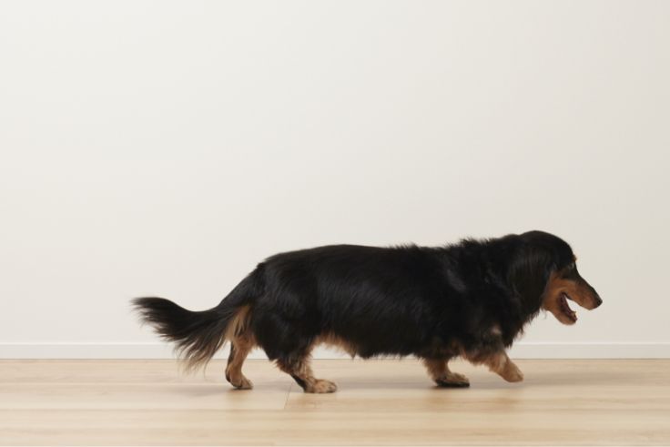 高いところからジャンプをする、階段の上り下りがしにくそうな様子を見せる、床で滑っていることがある