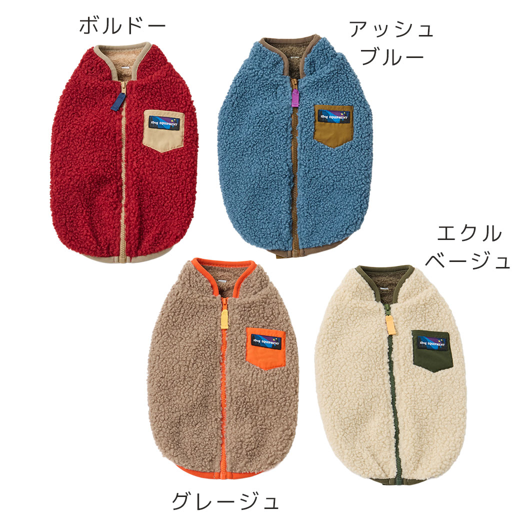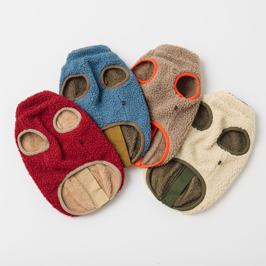 愛犬の動きを妨げないよう粗目のボア素材をチョイス、柔らかさと軽さを追求しました。
