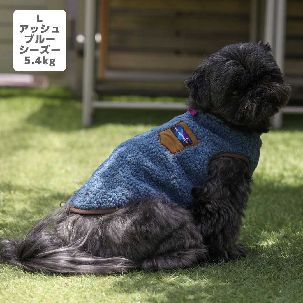 シーズー5.4kg(首26/胴38/丈38cm)のつぶくんはアッシュブルーのLを着用