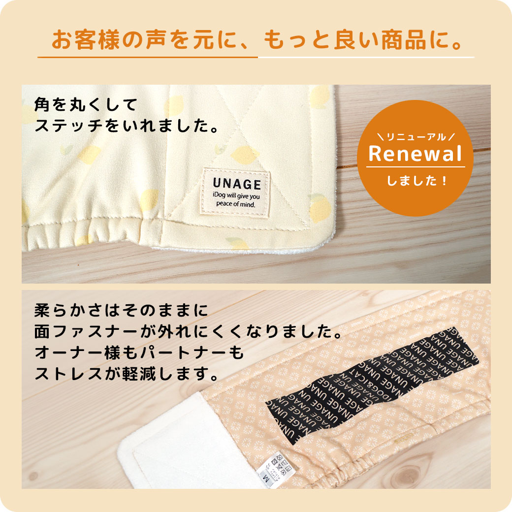 やわらかくて負担が少ない特殊な面ファスナーを使用しています。愛犬・愛猫が動いたり転がったりしてもごわつかず、ストレスなく付けていられます。