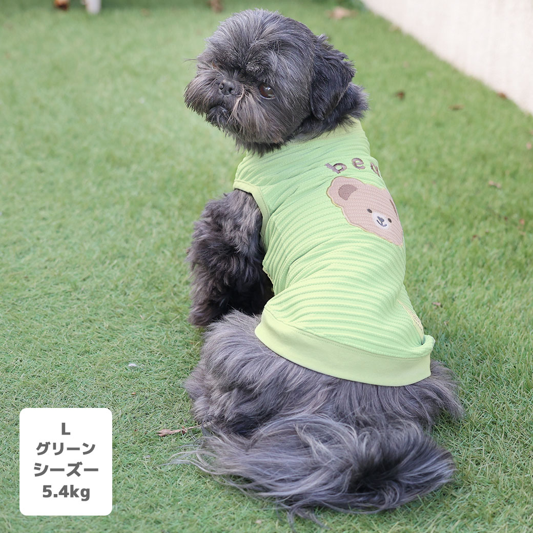 くまさんが目印のカジュアルキュートな犬用タンクトップです。 伸縮性の高いしっかりとした素材を使っているので愛犬の身体にフィットして動きやすいです。 防蚊・防虫加工なので、虫が多い季節にもピッタリのドッグウェアです。
