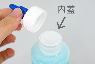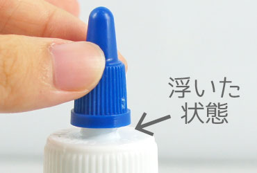 青色のキャップ部分は外さないで、少し浮いた状態にします。これで液体が出るようになります。