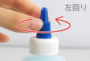 キャップの先端の青色部分のみを左回りに回して、緩めます。