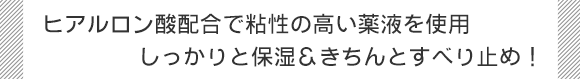 ヒアルロン酸配合で粘性の高い薬液を使用している為、しっかりと保湿、きちんとすべり止めができます。