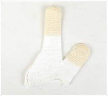 ゴム部から手を通し、親指と人差指に「ブラシ部」をはめ、「ストッパー」を中指を・薬指・小指を通して装着します。