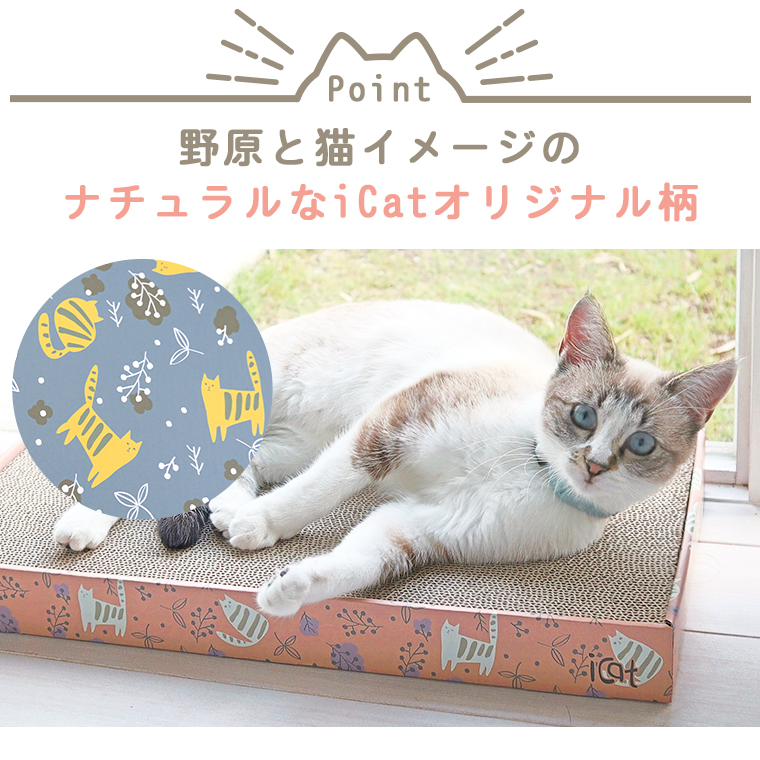 iCatオリジナル柄の可愛いつめとぎです。 野原と猫をイメージしたイラストがプリントされています。