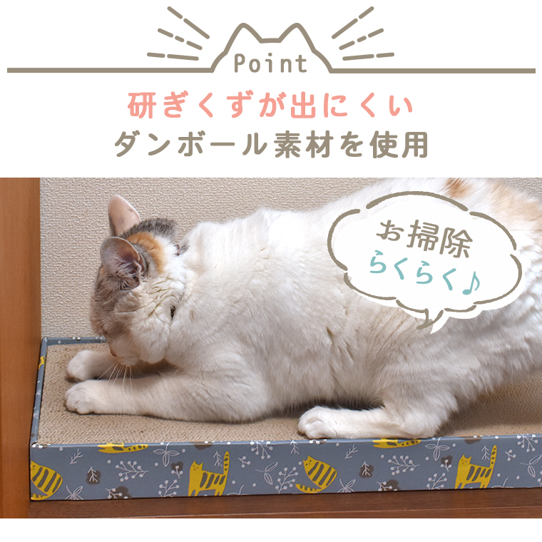 ダンボールの断面でしっかりガリガリできます。 とぎくずが出にくい素材を使用しており、オーナーさんのお掃除もラクです。