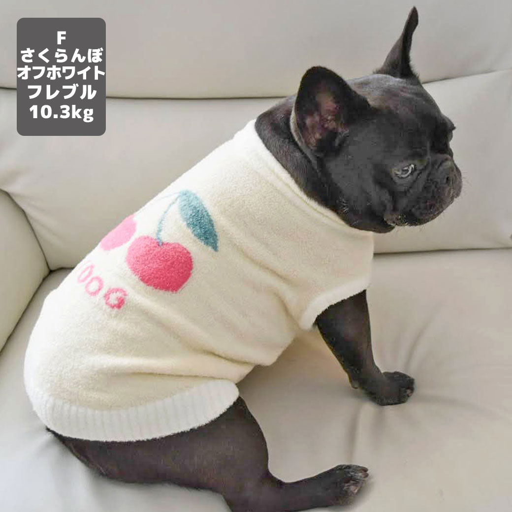 フレブル10.3kg(首38/胴56/丈34cm)のPcheちゃんはさくらんぼオフホワイトのFを着用