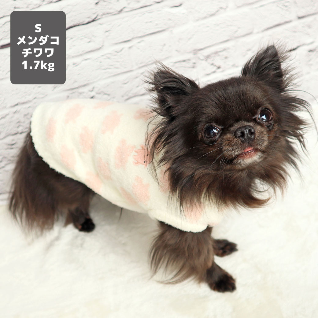 チワワ1.7kg(首19/胴28.5/丈21cm)の小桃ちゃんはメンダコのSを着用