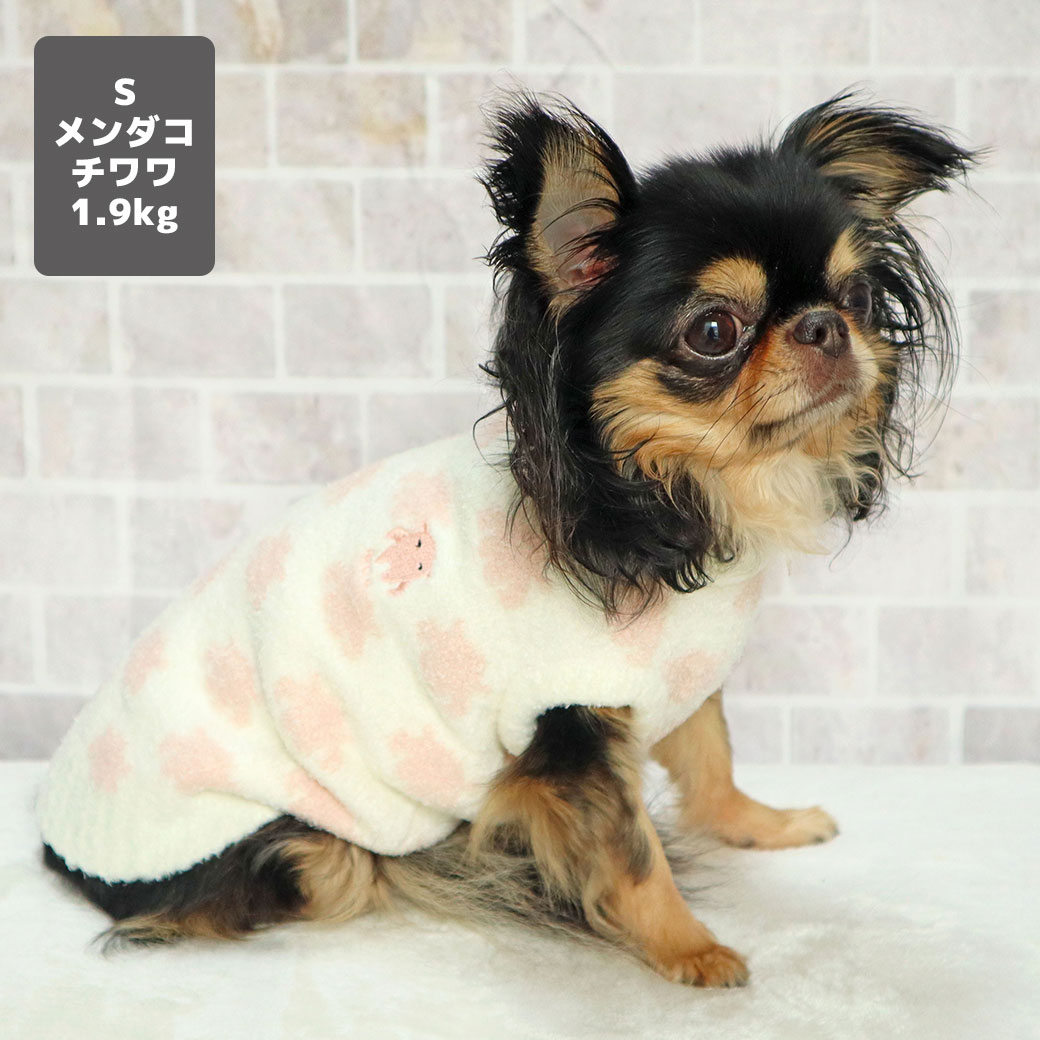 チワワ1.9kg(首19/胴29.5/丈21.5cm)のウメちゃんもメンダコのSを着用