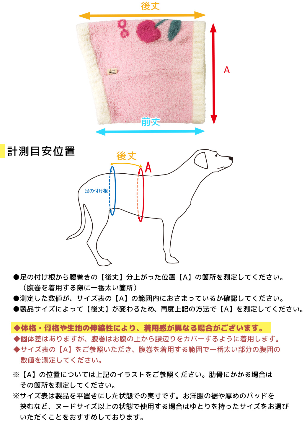 ワンちゃんのお腹のサイズに合わせゴムを調整して下さい。