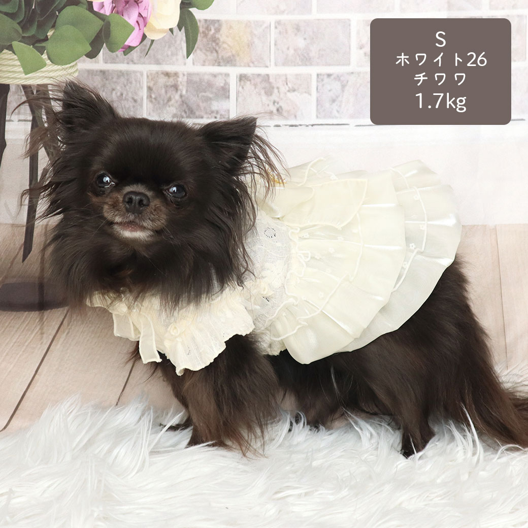 チワワ1.7kg(首18/胴27.5/丈18cm)の小真知ちゃんはホワイト26のSを着用