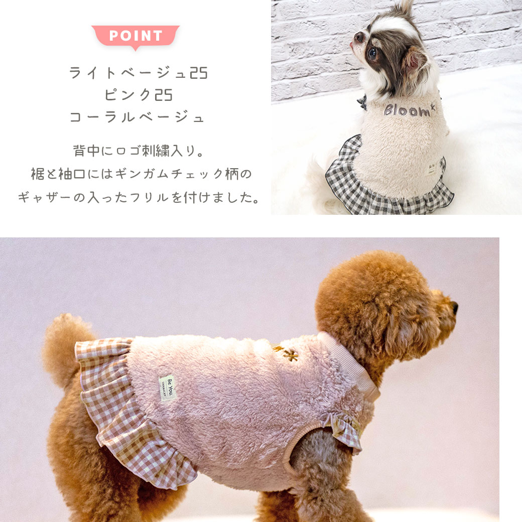 チワワ1.7kg(首18/胴27.5/丈18cm)の小真知ちゃんはライトベージュ25のXSを着用