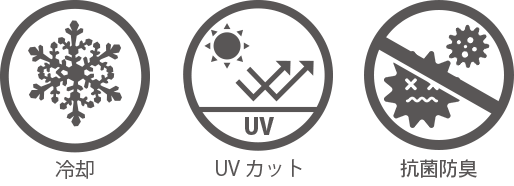 水冷・空冷クール・UVカット機能加工・冷却放熱クール・抗菌・消臭機能加工・UVカット・UPF50+
