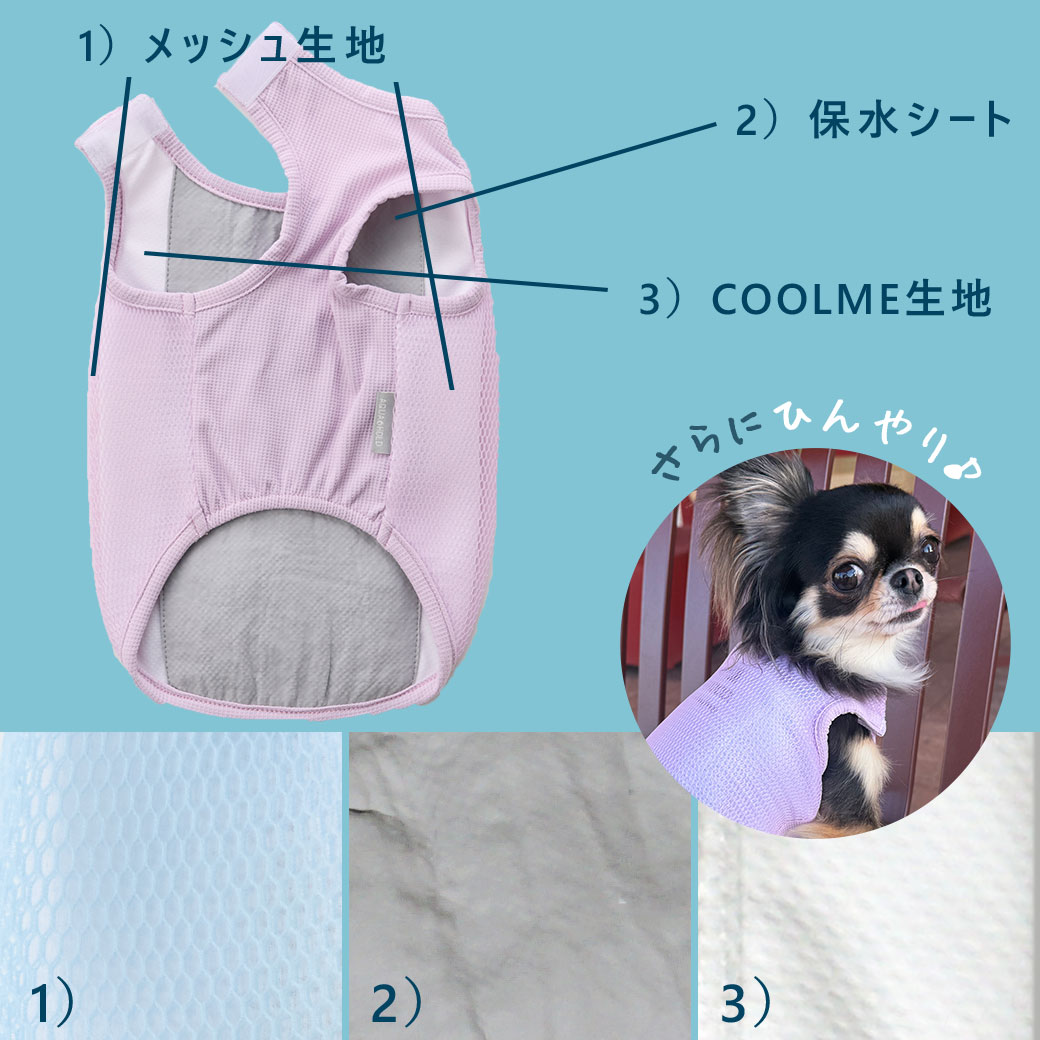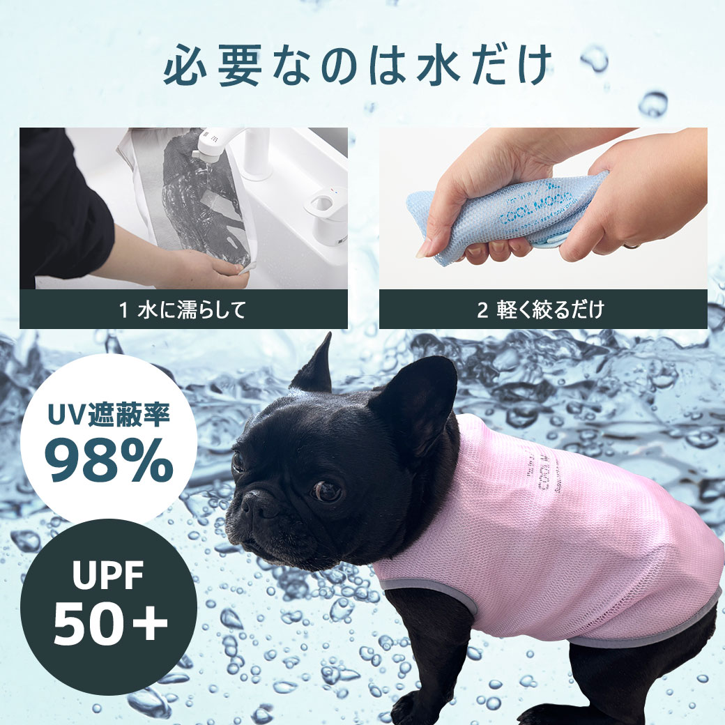 身体全体をひんやりさせるタンクタイプのクールアイテムは活動的なワンコにピッタリ。