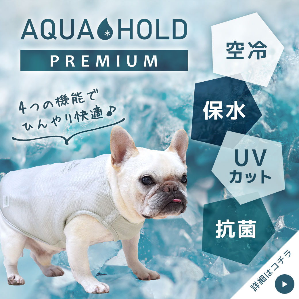 暑い日の外遊びにピッタリの犬用冷却クールタンクです。 保水生地と空冷機能でひんやり心地よく冷却し続けます。お出かけ前に水を含ませてご利用下さい。 肩開き仕様の新デザインで着せやすく、保水範囲も広がってさらに快適に!お腹側はストレッチする素材でフィット性が向上してさらにひんやり。 特許取得構造を利用したひんやり「冷却」タンク「AQUA HOLD PREMIUM」で新感覚のひんやり感を実感してください 。