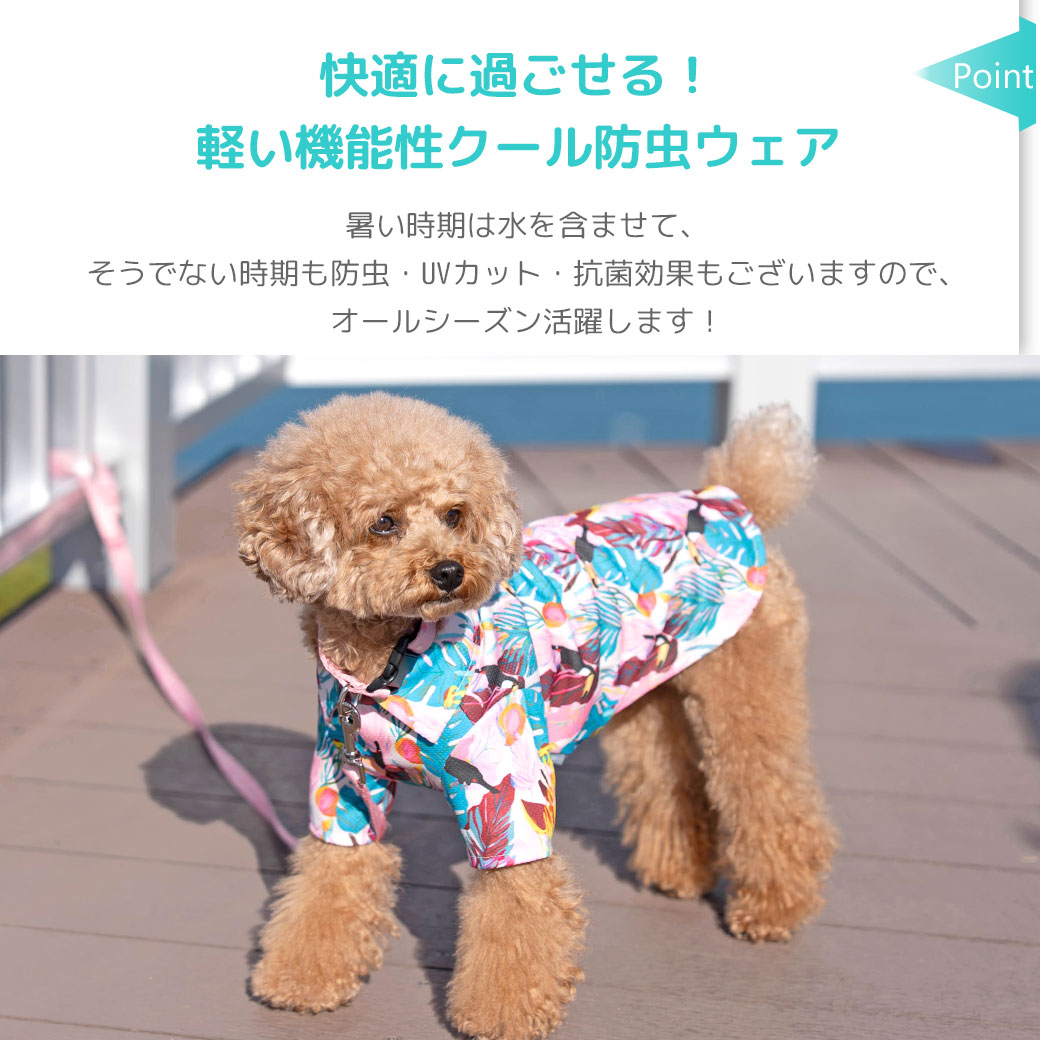 特殊構造の冷感素材に、防虫機能もプラスしたペット用ウェアです。