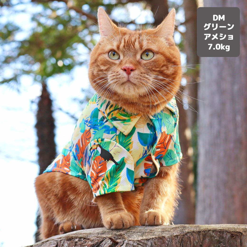 アメショ7.0kg(首28/胴48/丈28cm)のタラくんはグリーンのDM着用