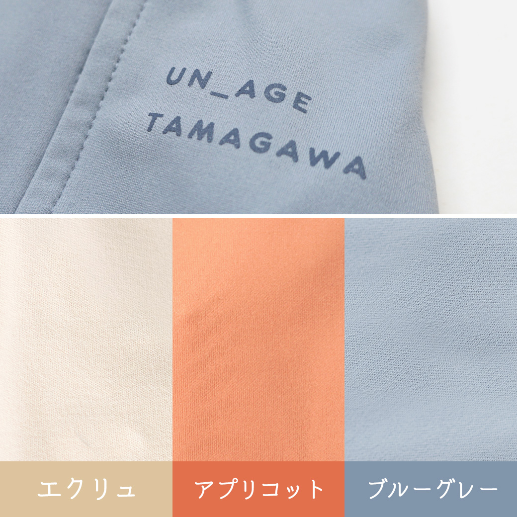 肩には「UN_AGE TAMAGAWA」のロゴプリント入り。