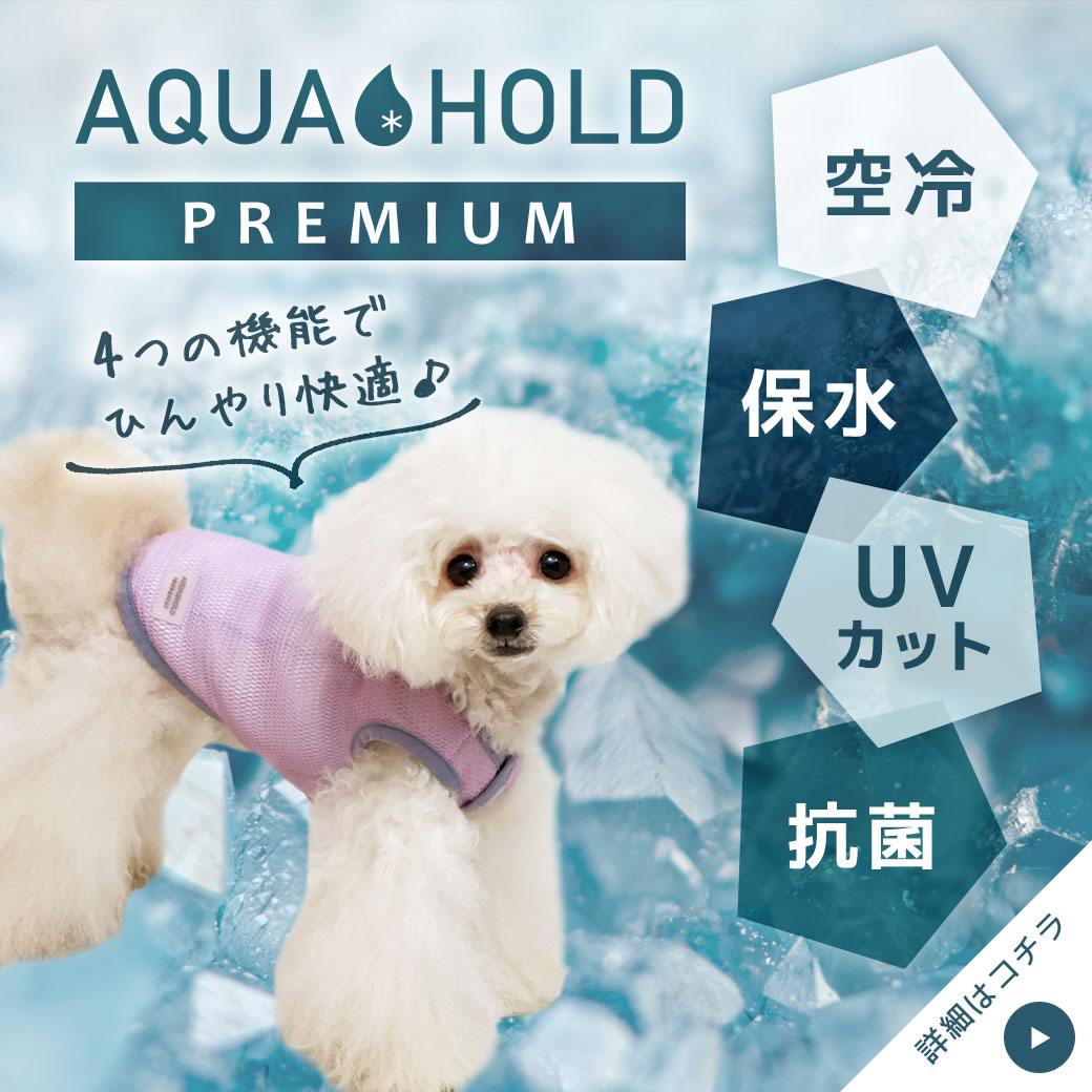 先日アクアホールドを購入致しました。他社のサマーウエアを長年試しましたが、アクアホールドを使用した感じでは、かなり良い感じです。他社のウエアより乾きも遅く、散歩途中休ませると涼しそうにしています。強いて言えば、胸の部分にも保水シートを付けて頂けると、尚良いかなと思います、、。これからも良い商品をお願いします。