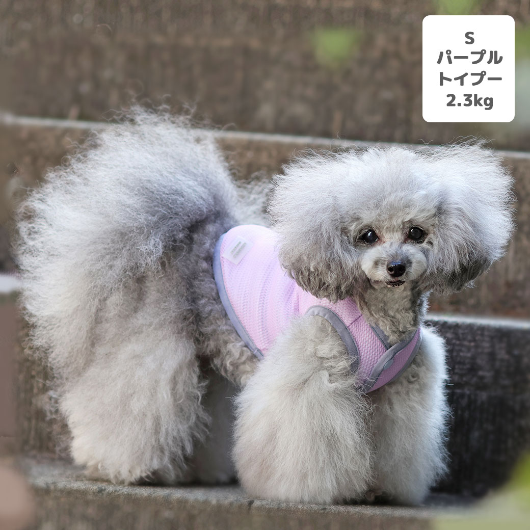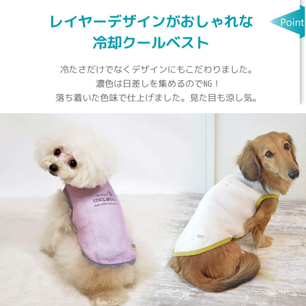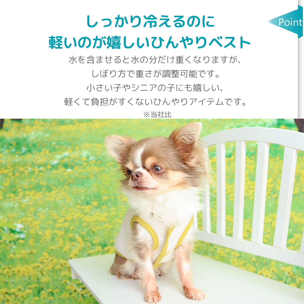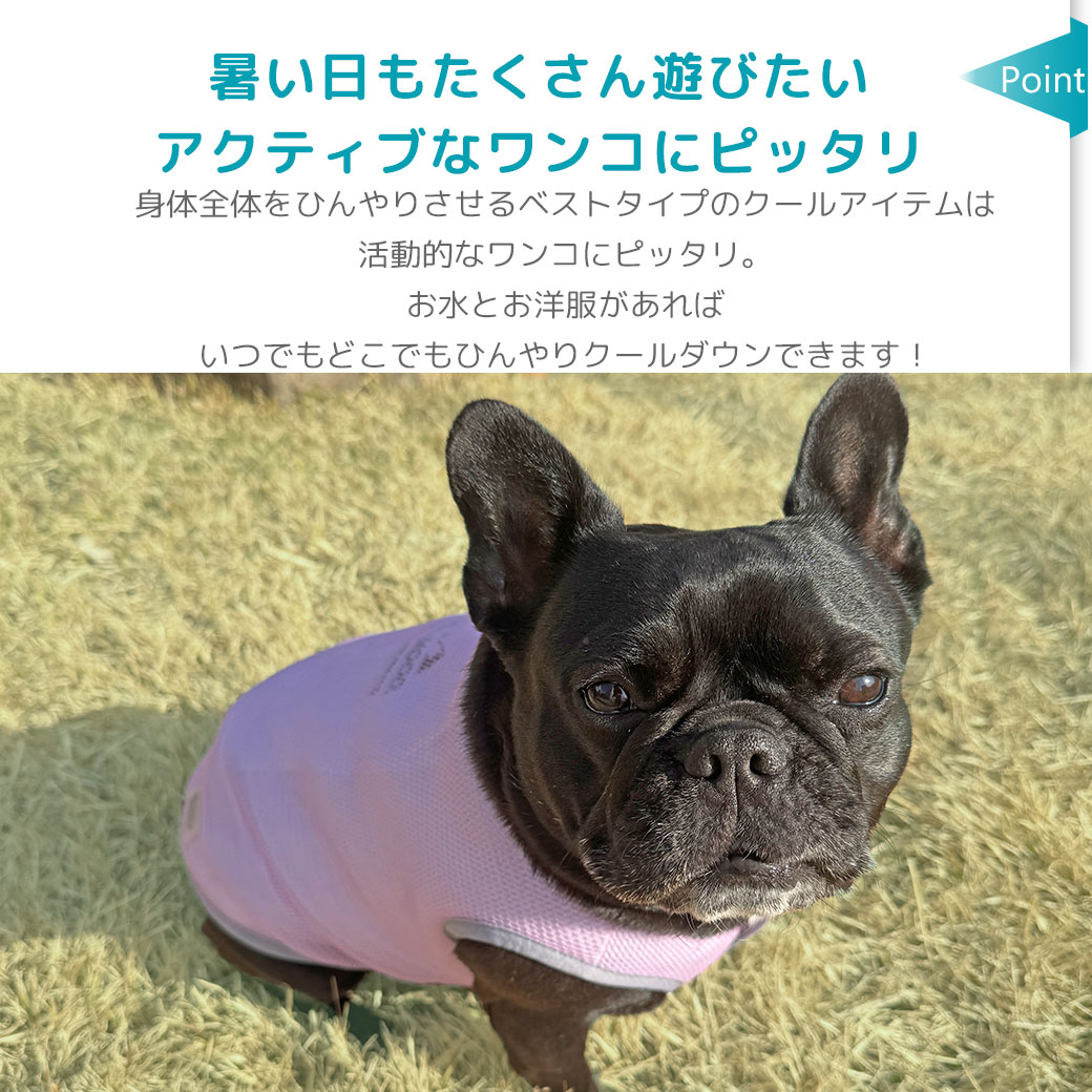 身体全体をひんやりさせるベストタイプのクールアイテムは活動的なワンコにピッタリ。