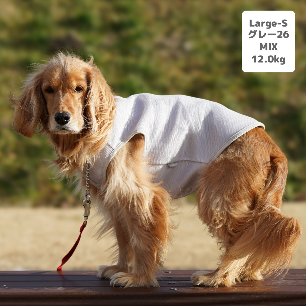 MIX12.0kg(首37/胴53/丈48cm)のはちみつちゃんはグレー26のLarge-Sを着用