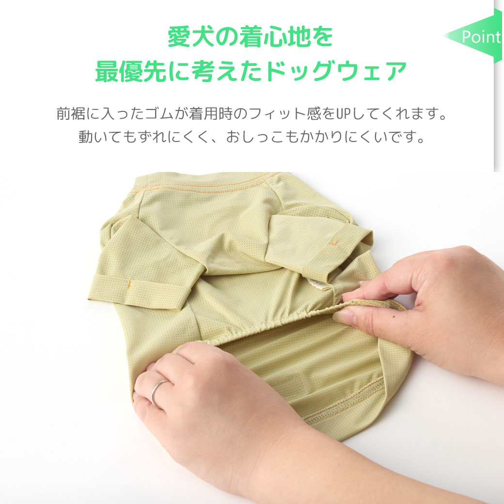 ひんやり気持ちいい接触冷感と防蚊・防虫Wの機能が愛犬を守ります。 虫の多い季節から暑い日まで心地よく過ごせる愛犬用Tシャツです。