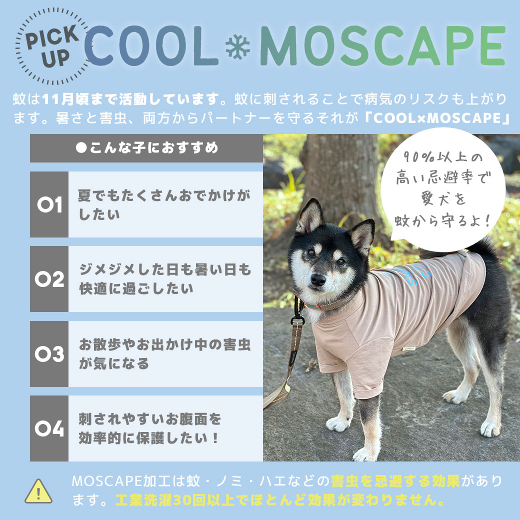防蚊MOSCAPE…90%以上の高い忌避率で愛犬を蚊から守ります。