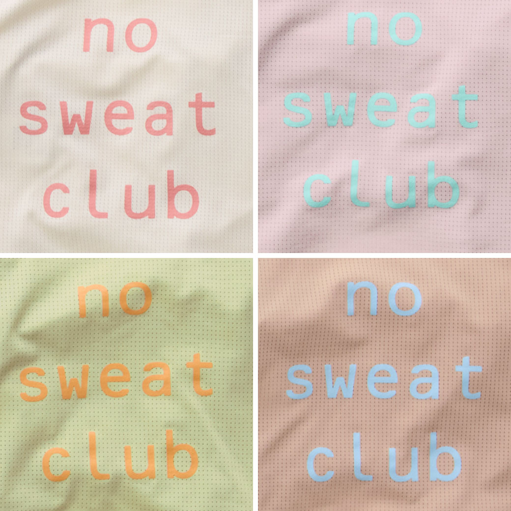"NO SWEAT CLUB"「汗かかない仲間たち」みたいなニュアンスのユーモアあるロゴをプリントしました。