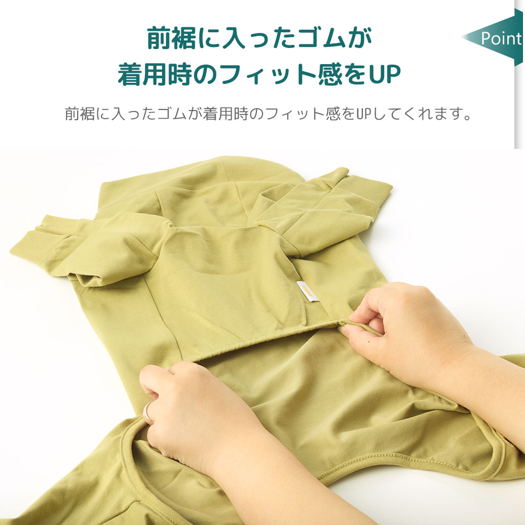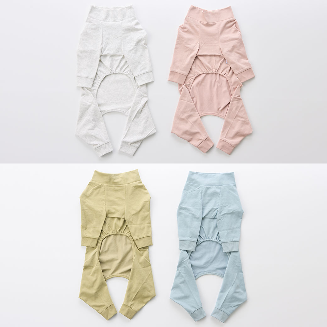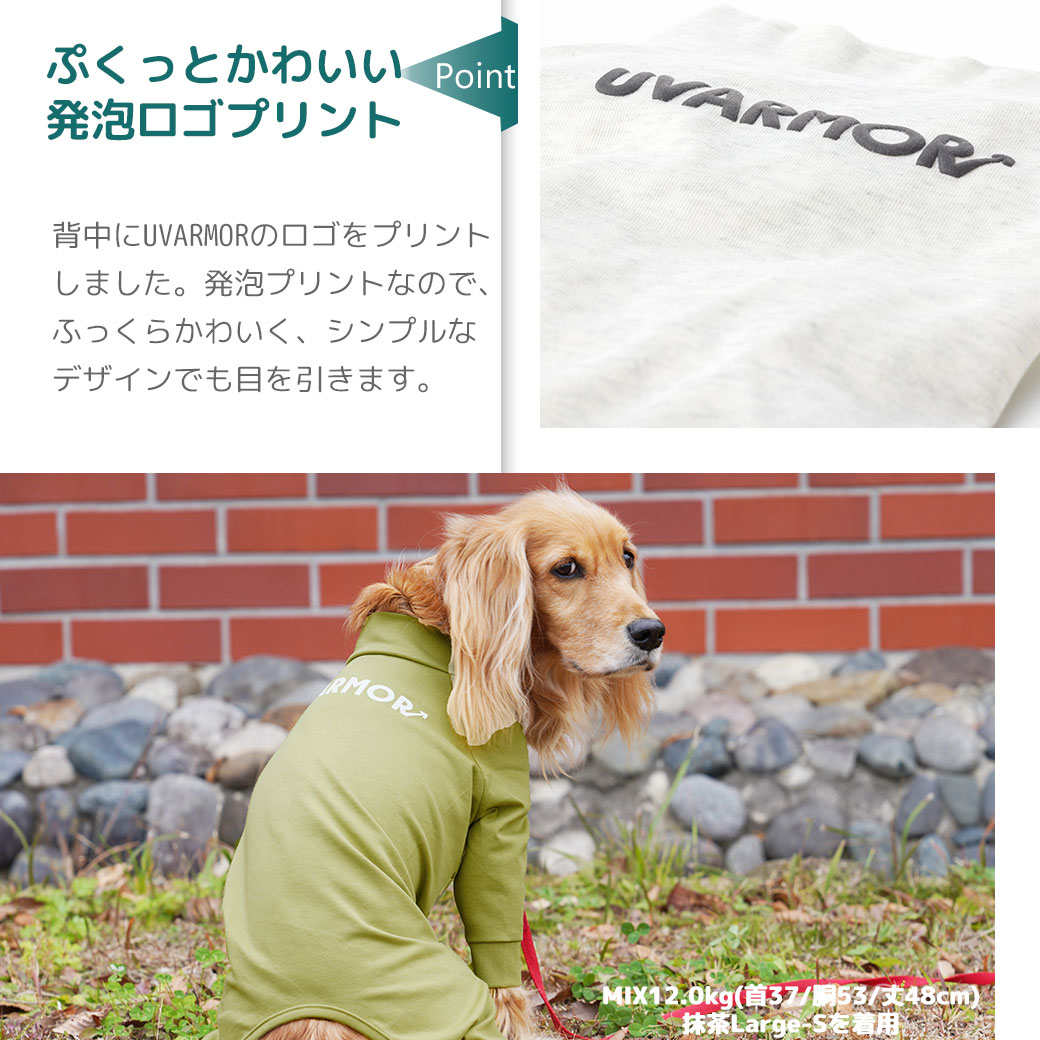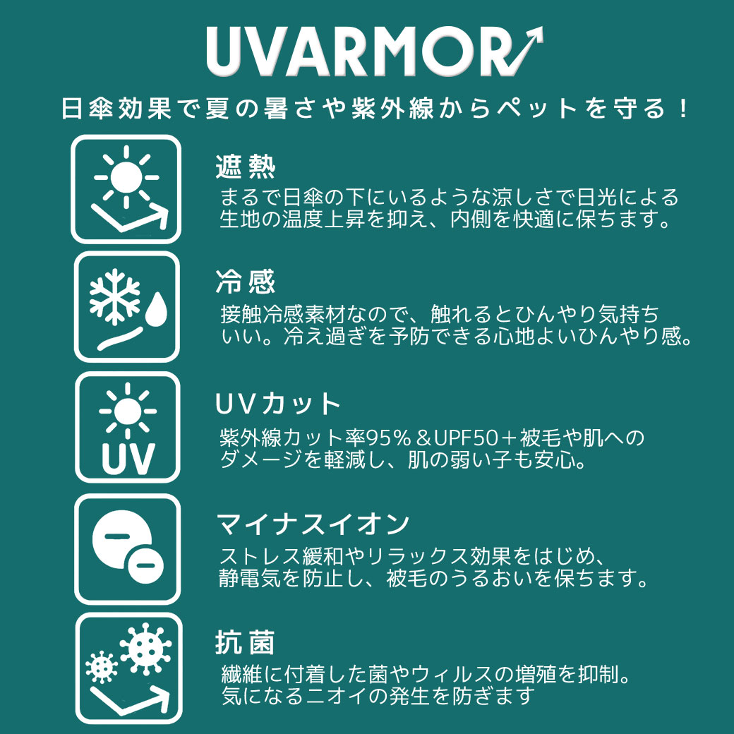 夏の暑さや紫外線から愛犬を守ってくれる、5つの機能(遮熱・UVカット・冷感・抗菌・マイナスイオン)を持った素材を使用したカバーオールです。 春夏シーズンのデイリーウェアにぴったりの1枚です。