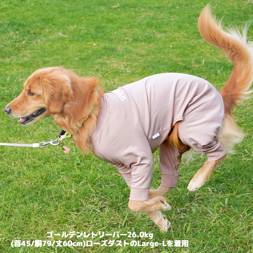 ゴールデンレトリーバー26.0kg(首45/胴79/丈60cm)のベルちゃんはローズダストのLarge-Lを着用