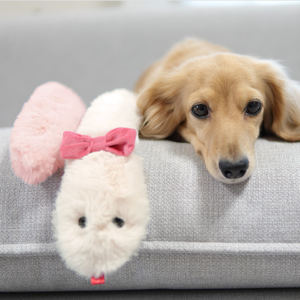 ミニチュアダックス3.9kg(首25/胴37/丈31cm)のクムちゃんはホワイトピンクのMを着用