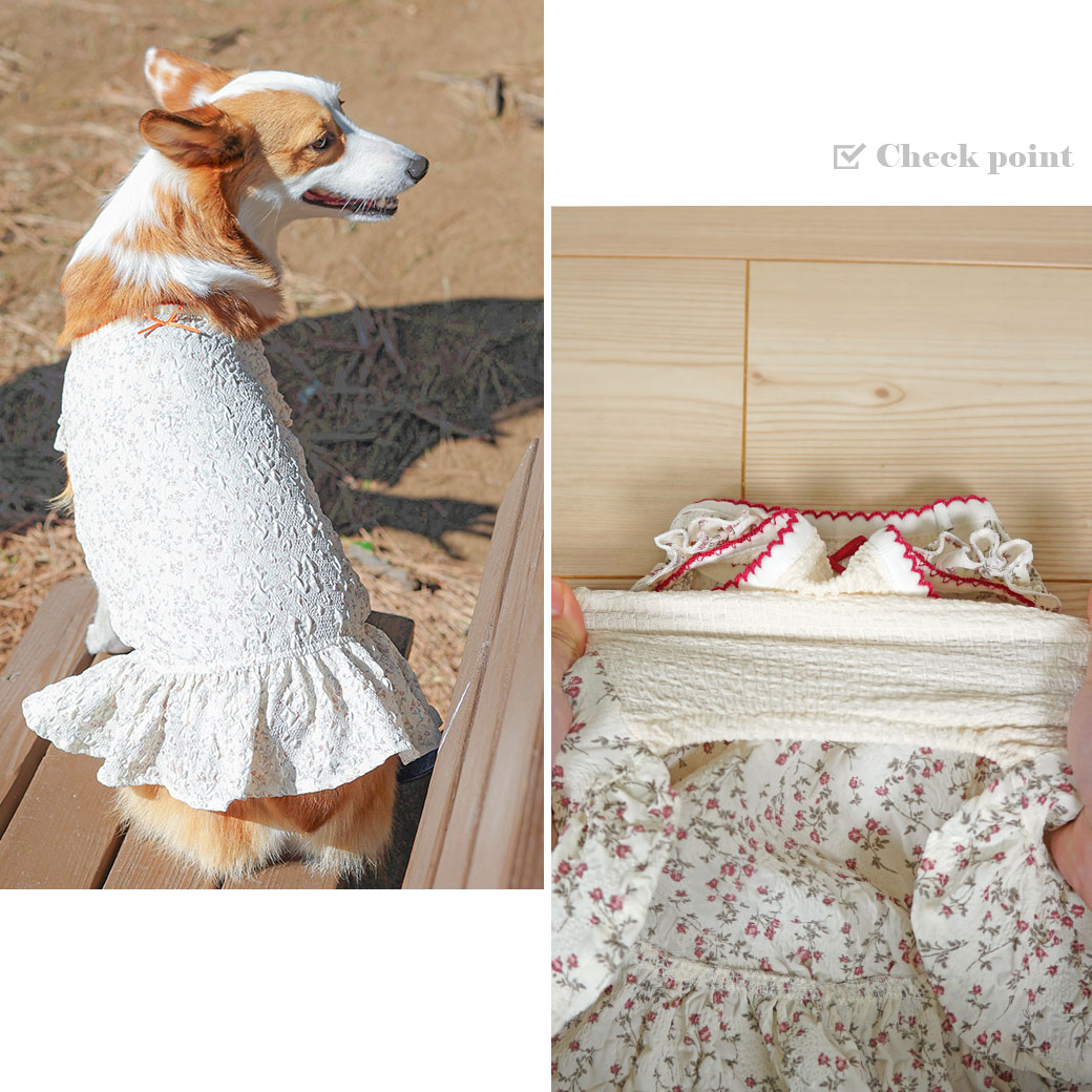 小花柄のワンピースが可愛くて飼い主とペアルックできそうな1枚です。3000円以下には見えないお洋服で高見えします。洗い替えにもう1枚欲しいくらい可愛いです。