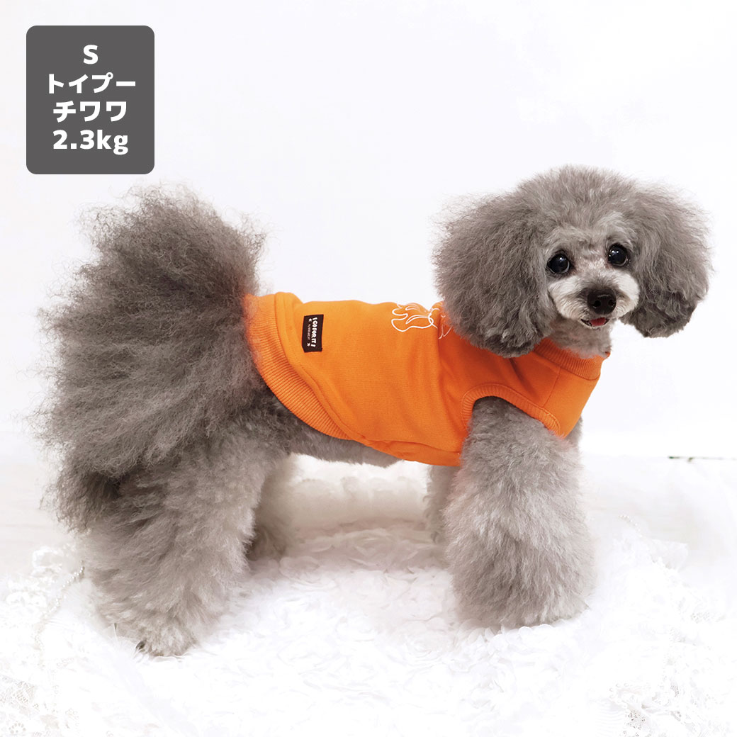 トイプー2.3kg(首18/胴31/丈24cm)のメルシーちゃんはオレンジのSを着用