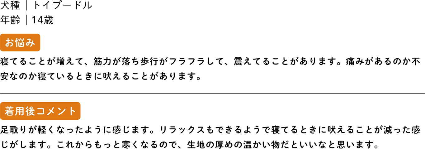 基本的な生活をサポートすることで、健やかに過ごす日々を少しでも長くしたいと考えました。