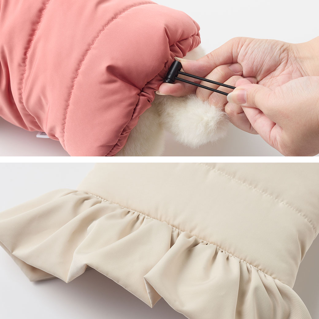 うさ耳の方は身頃の上からフリルを付けているので、お尻までしっかり暖かいです。