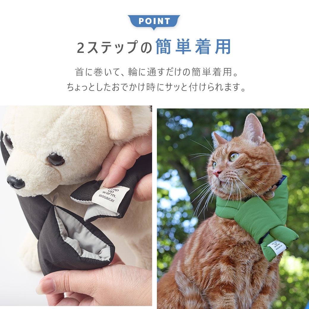 首に巻いて、輪に通すだけの簡単着用です。