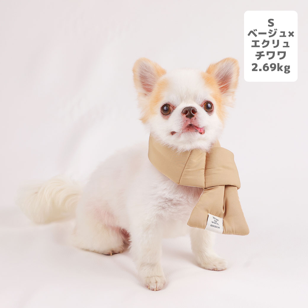 チワワ2.69kg(首21/胴34/丈25cm)の涼央くんはベージュ×エクリュのSを着用