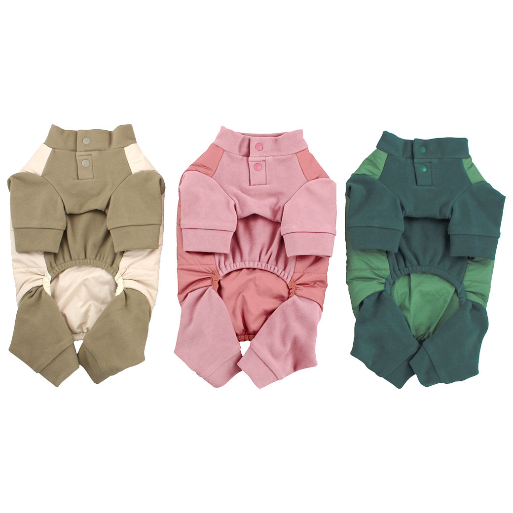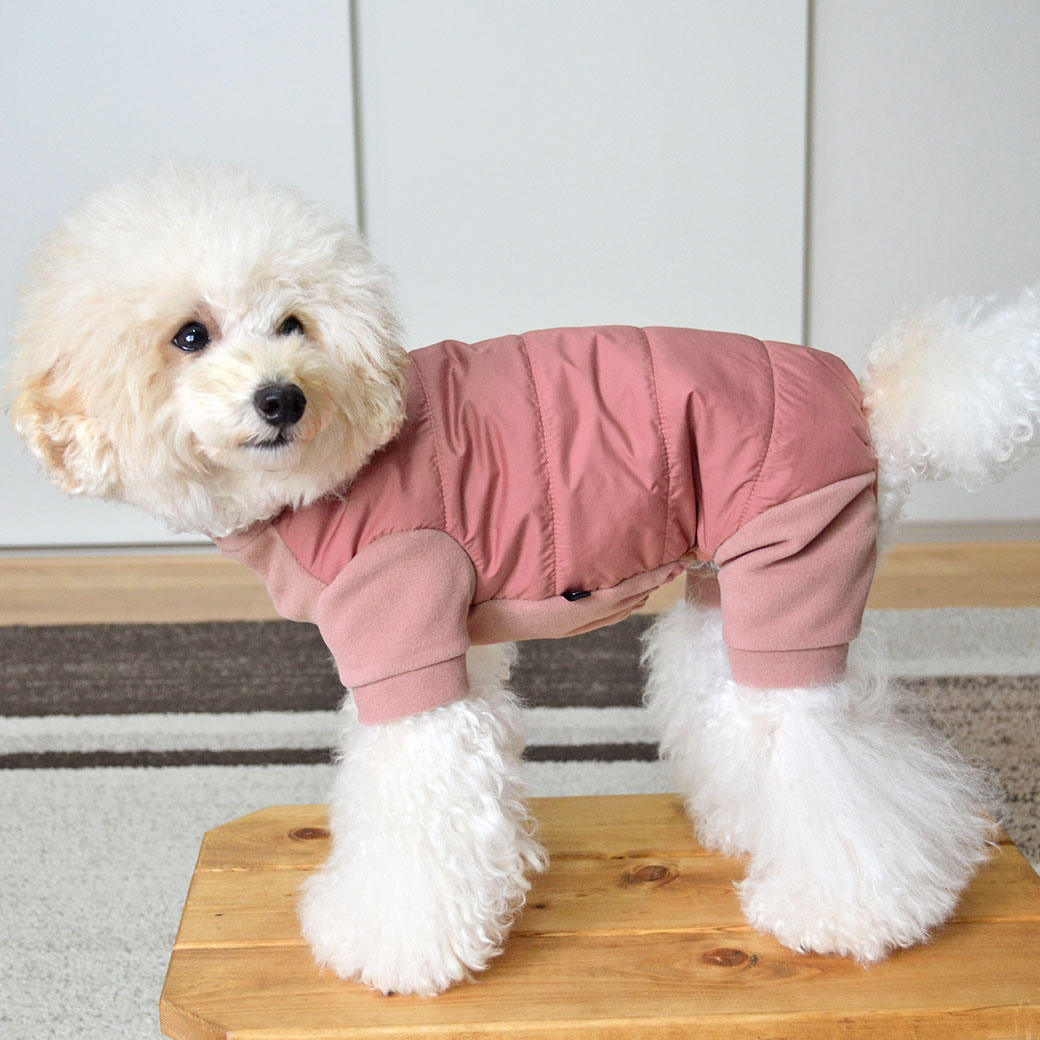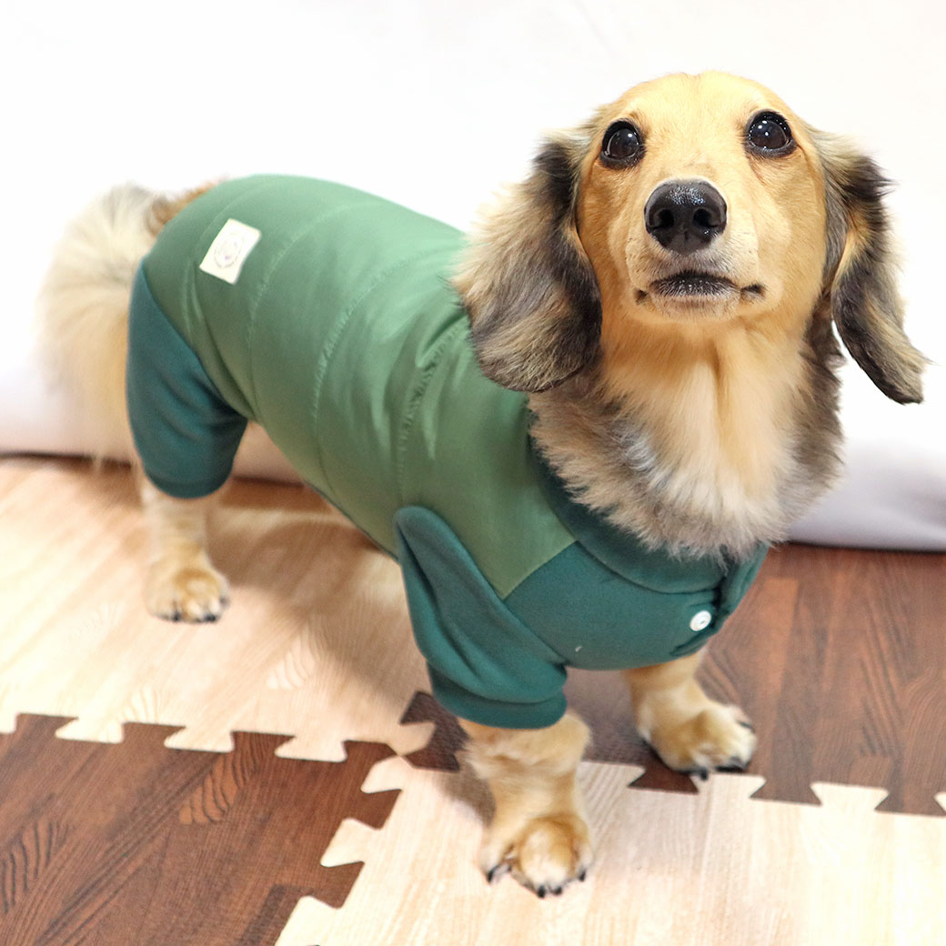 中綿入りのあたたかい冬用の防寒カバーオール。 軽くて暖かい愛犬用つなぎは寒がりな子にピッタリ。