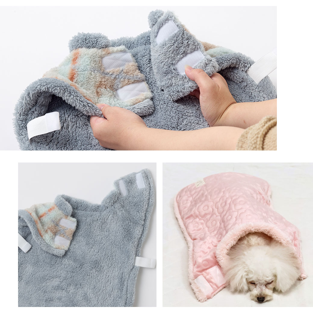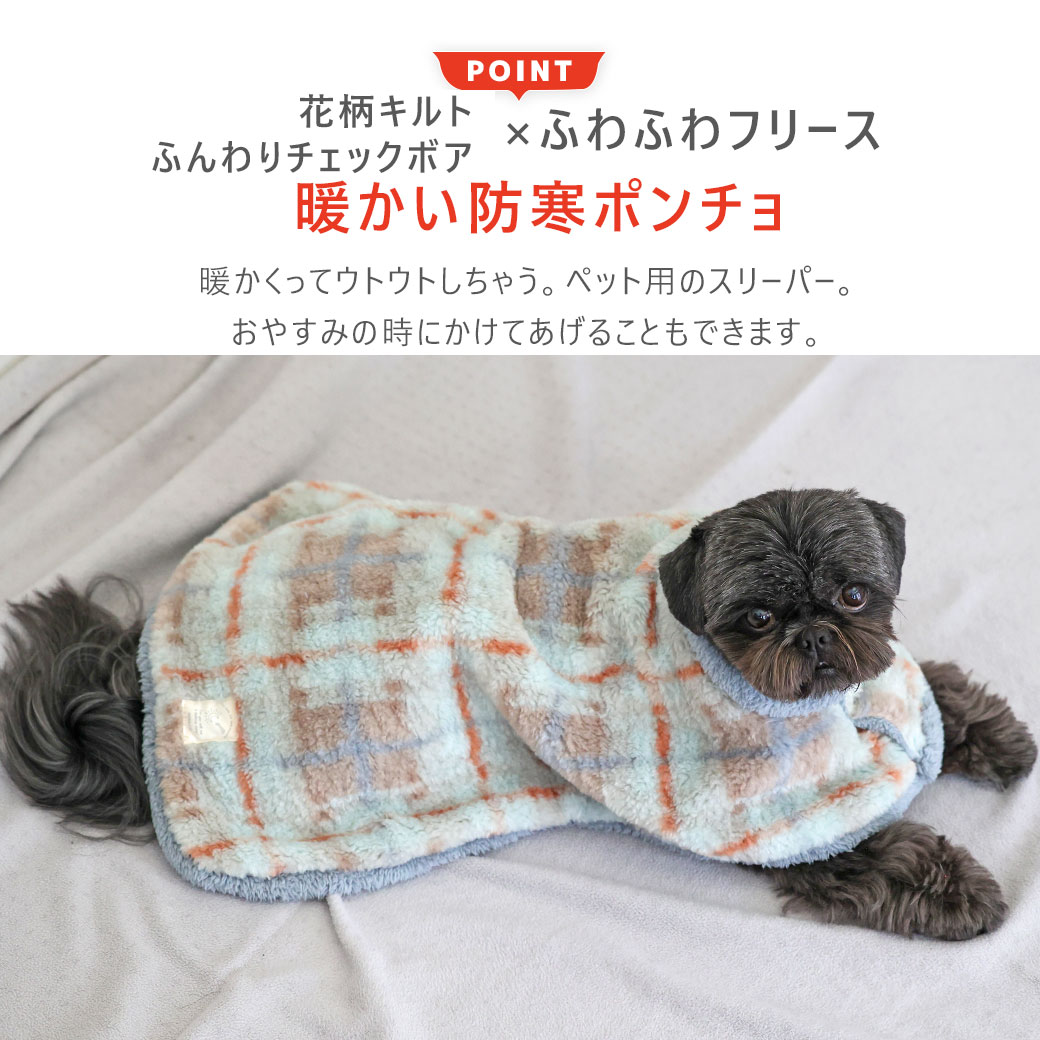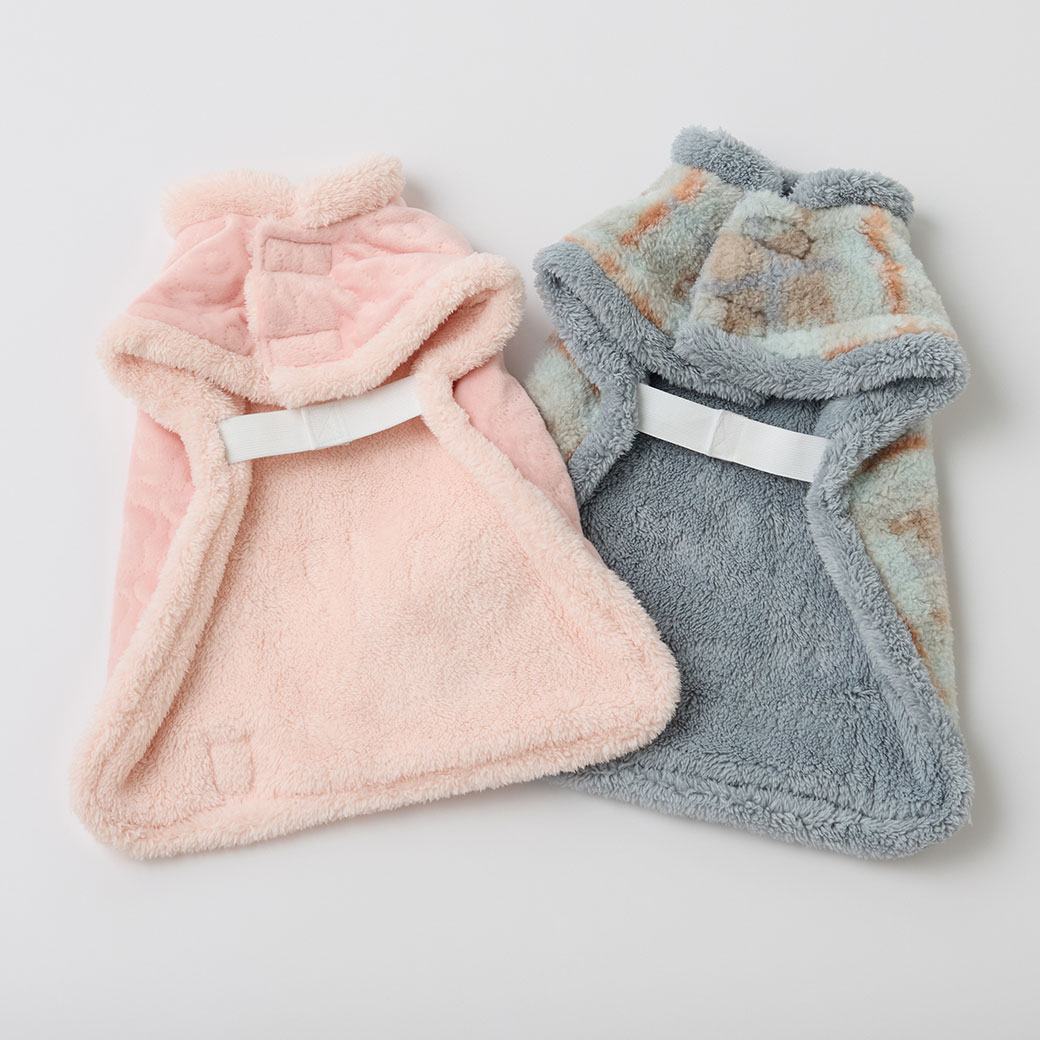 寒がりペットにピッタリなもこもこの防寒ポンチョです。 そのままぬくぬく寝てしまえる毛布のような犬用スリーパーです。