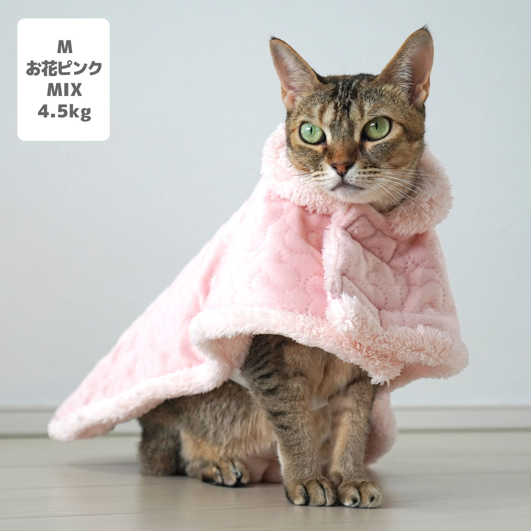MIX4.5kg(首21/胴36/丈34cm)のニコちゃんはお花ピンクのMを着用